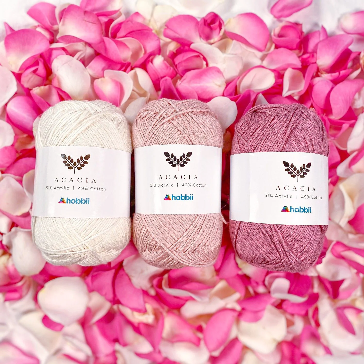 Acacia is the soft yarn blend combining cotton and acrylic in one lovely skein.
