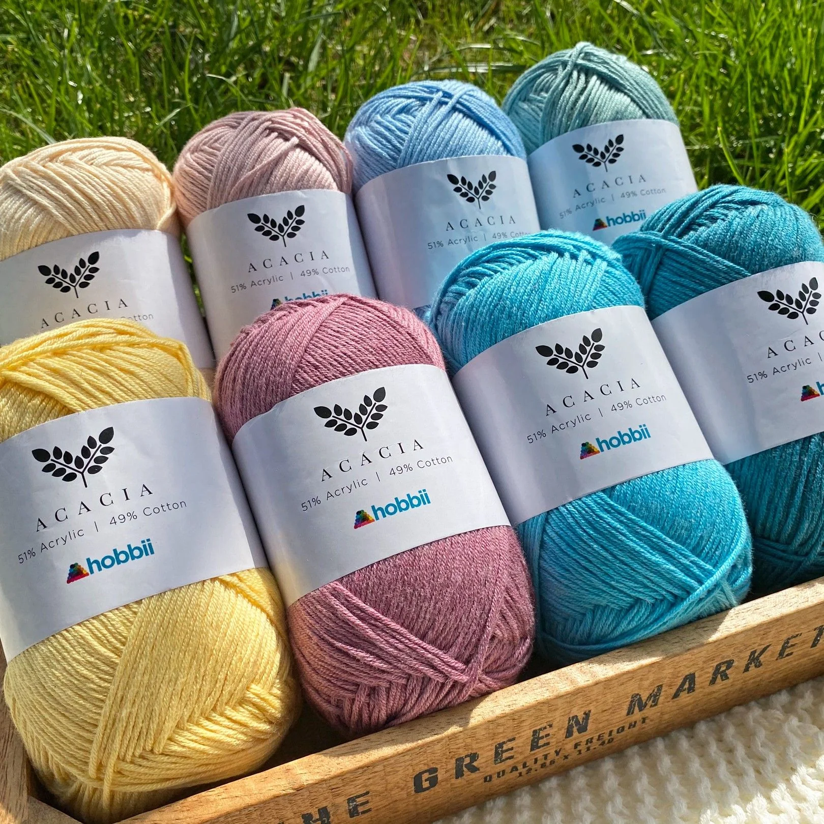 Acacia is known for its slightly melange effect. The cotton and acrylic are dyed separately, giving the yarn beautiful, subtle shades and creating an elegant, classic look with a pretty play of colors. The color palette offers a range of delicate pastels and deeper, timeless shades that you can’t help but fall in love with.